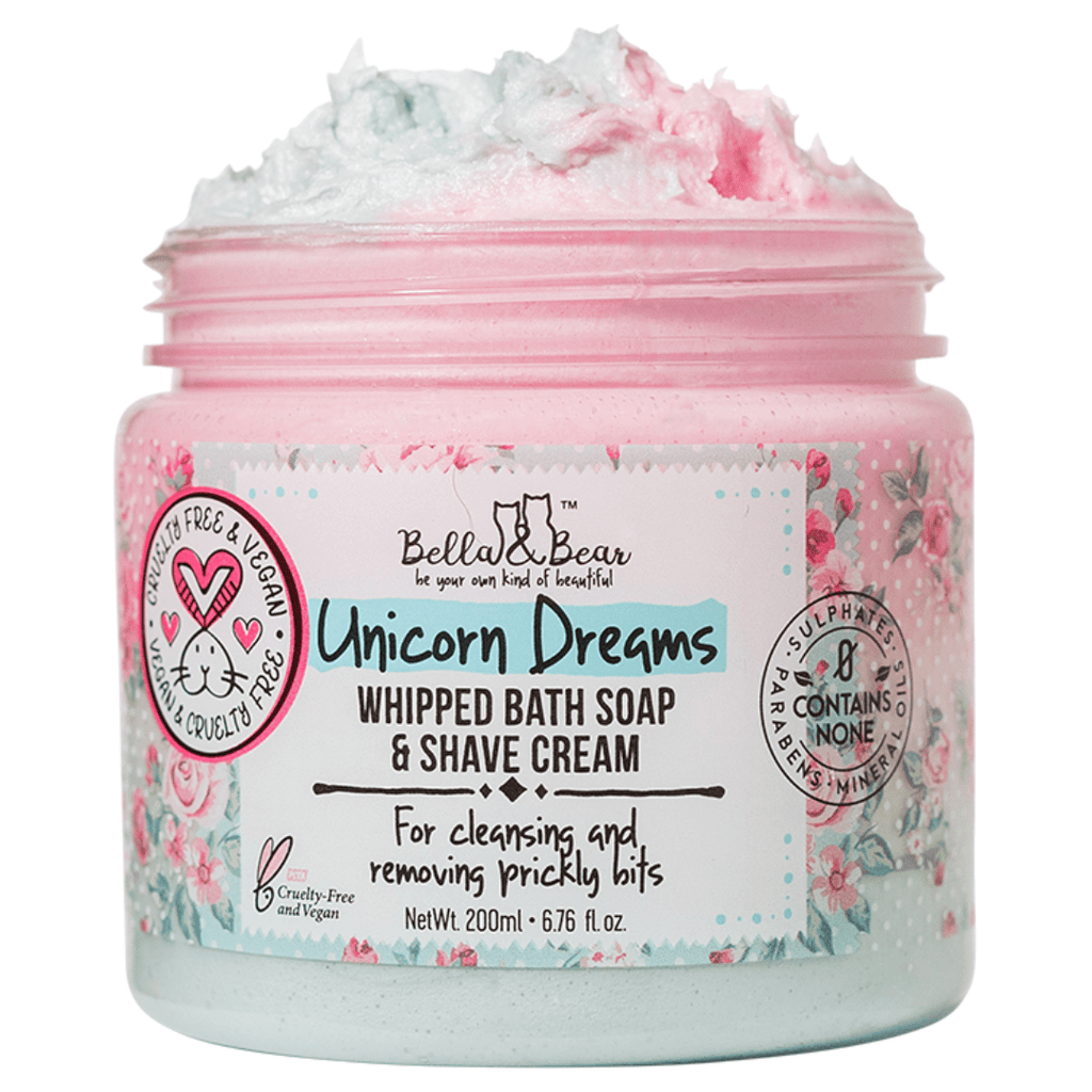 Step into a realm of enchantment with Unicorn Dreams, our revolutionary 3-in-1 whipped bath soap and shave cream. This isn't just a bath soap; it's an experience, a daily ritual that transforms ordinary moments into a touch of magic.